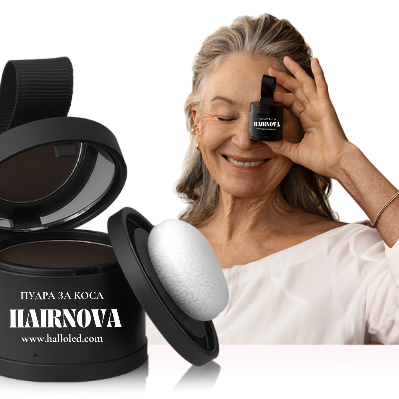 HairNova — пудра, която мигновено прикрива оредели участъци по косата или скалпа и ти връща плътния, естествен и женствен вид. ✨