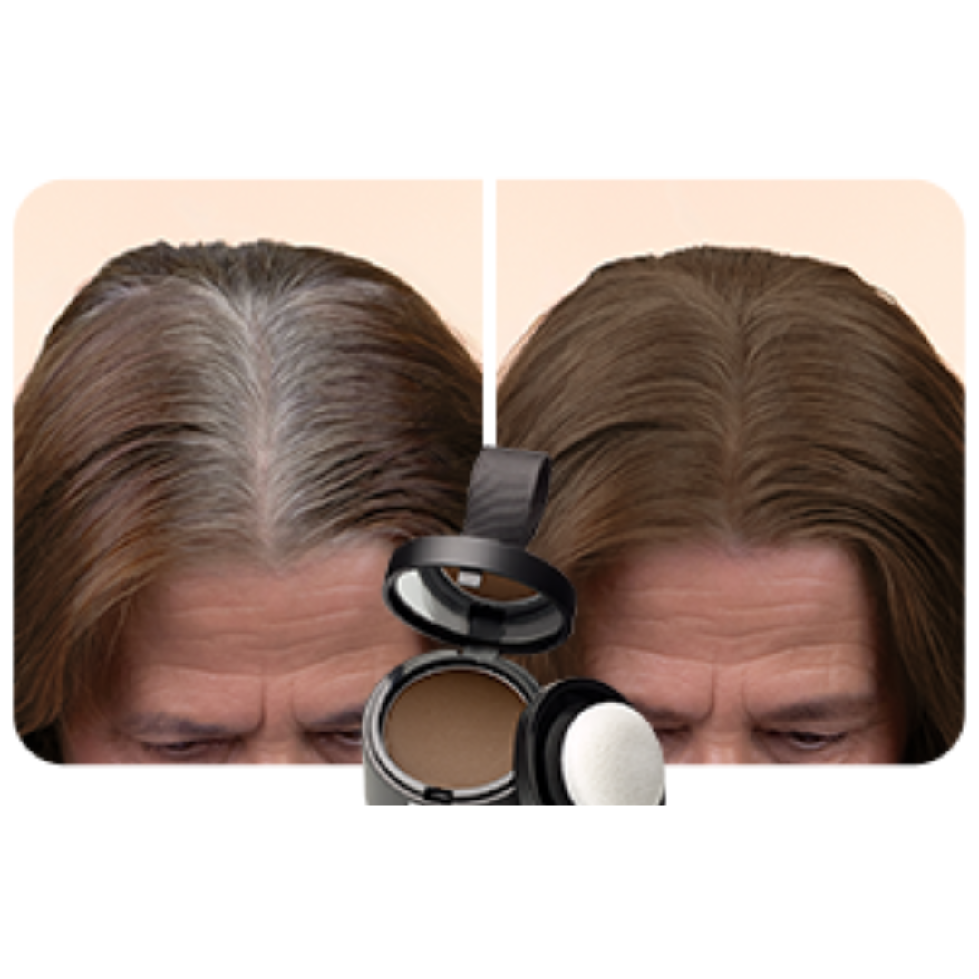 Прецизно покритие: Лесната за нанасяне пудра с прикрепената гъбичка попълва точно онези зони по косата ти, които искаш да прикриеш, придавайки по-плътен и обемен вид с напълно естествен ефект.